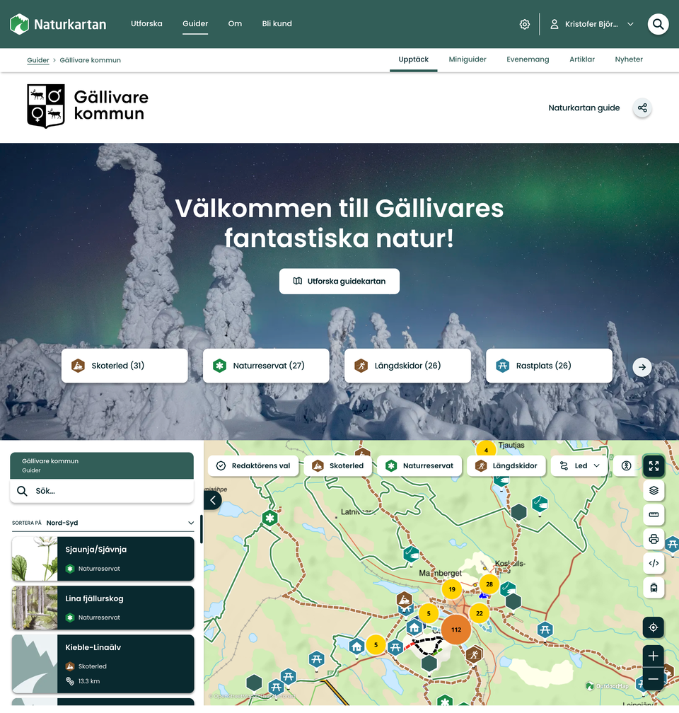 Aldrig tidigare har så många sökt efter vinteraktiviteter på Naturkartans webb och mobilapp som i början av den här vintern. Bara under december månad 2025 ökade besöken på Naturkartan.se med 17% från 123 000 besökare till 144 000. Lägg därtill all användning av Naturkartans mobilapp, och alla besök på inbäddade kartor på våra kunders webbplatser - och antalet besök blev totalt dubbelt upp - alltså uppskattningsvis ca 300 000 besök bara i december.