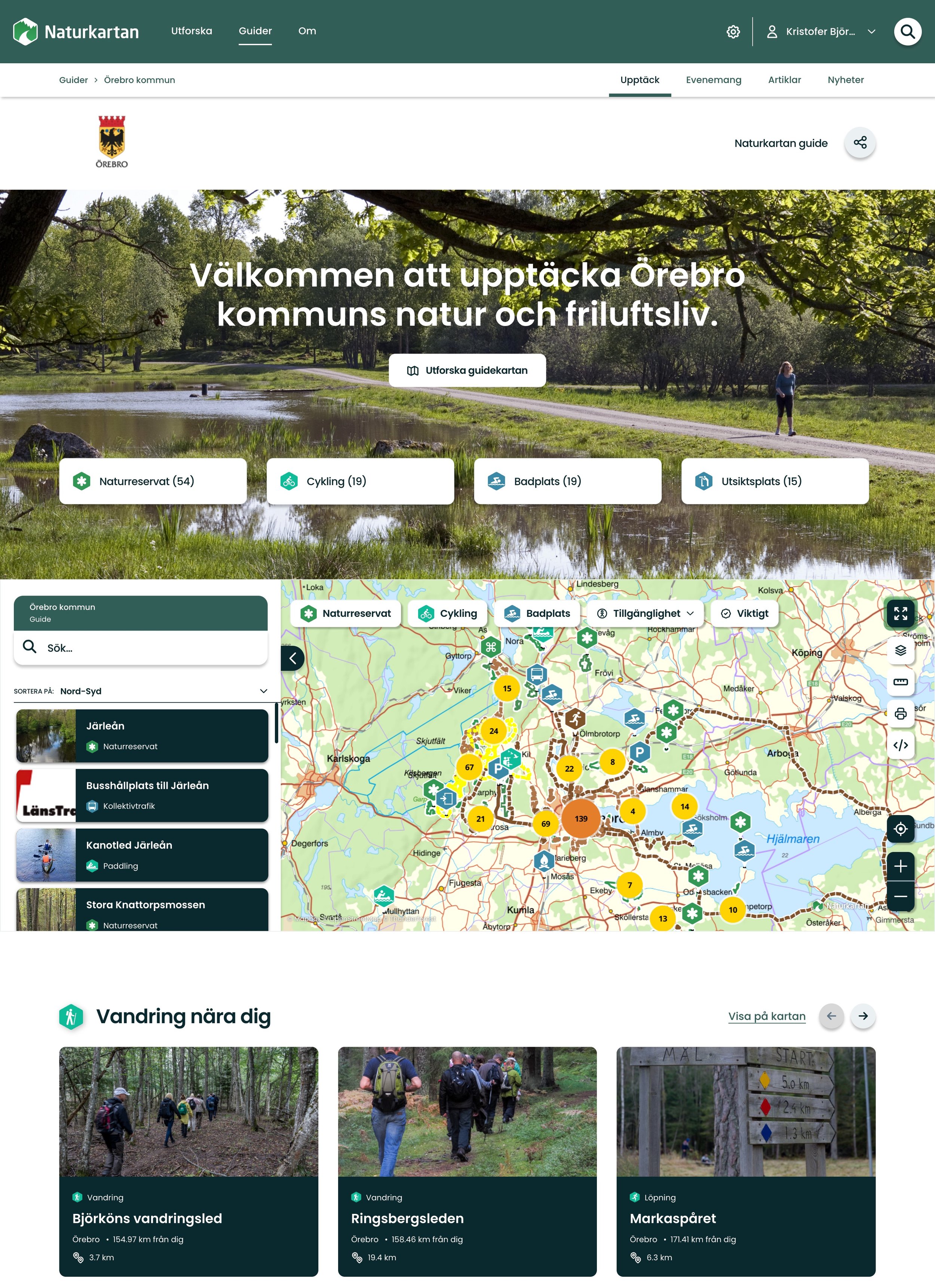 Även guiden har fått en rejäl ansiktslyftning på Naturkartan, med några nya förbättrade funktioner. Här är exempelvis Örebro kommuns guide: